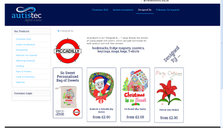 One of the social enterprises is Autistec; the artistic folk amongst the group have their designs printed onto a range of goods, the artists are paid a commission for each item sold with their artwork.